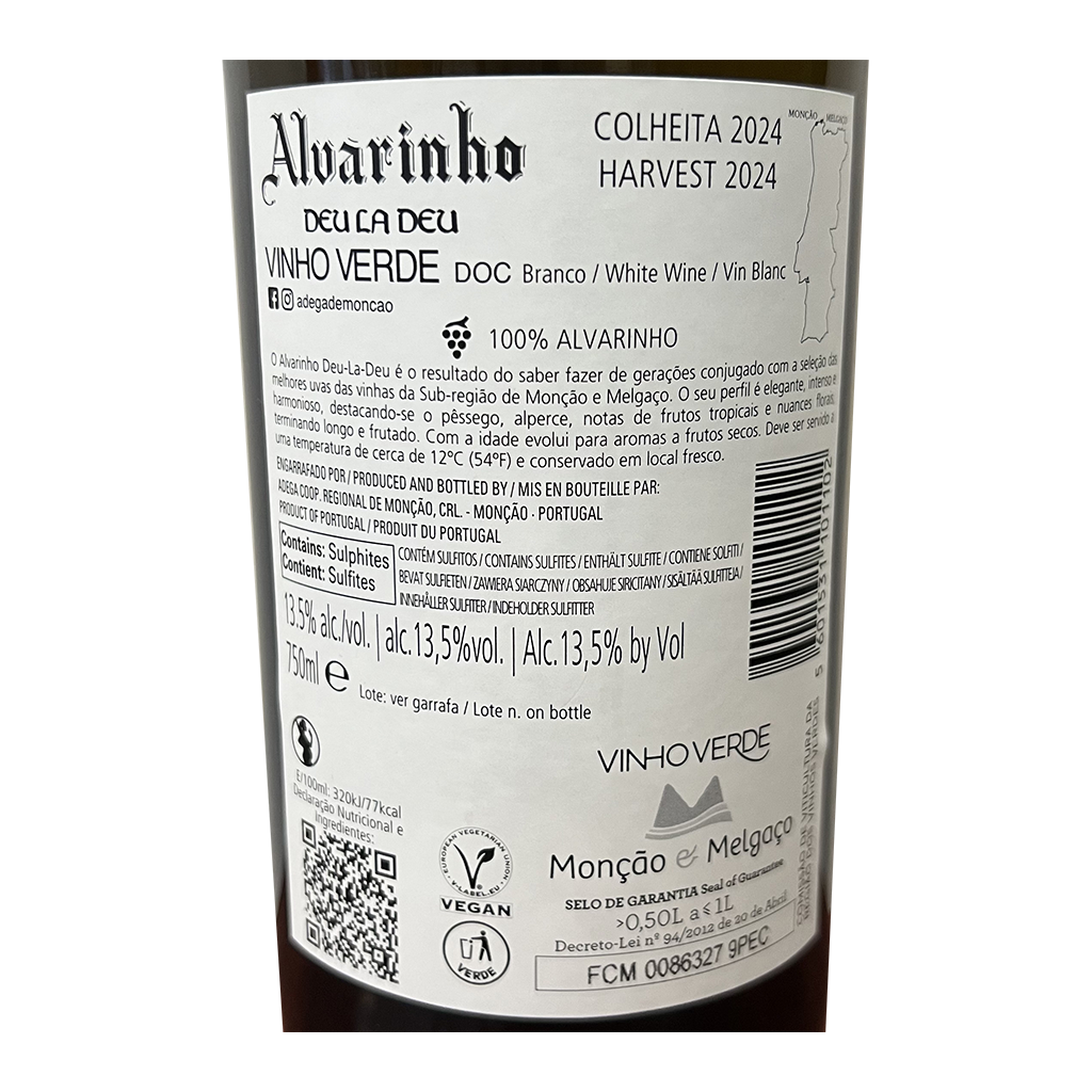 El Muralhas Monção - Vino Blanco, con 750ml es un Vino Blanco elaborado en Portugal - Vinho Verde por Adega Cooperativa de Monção.