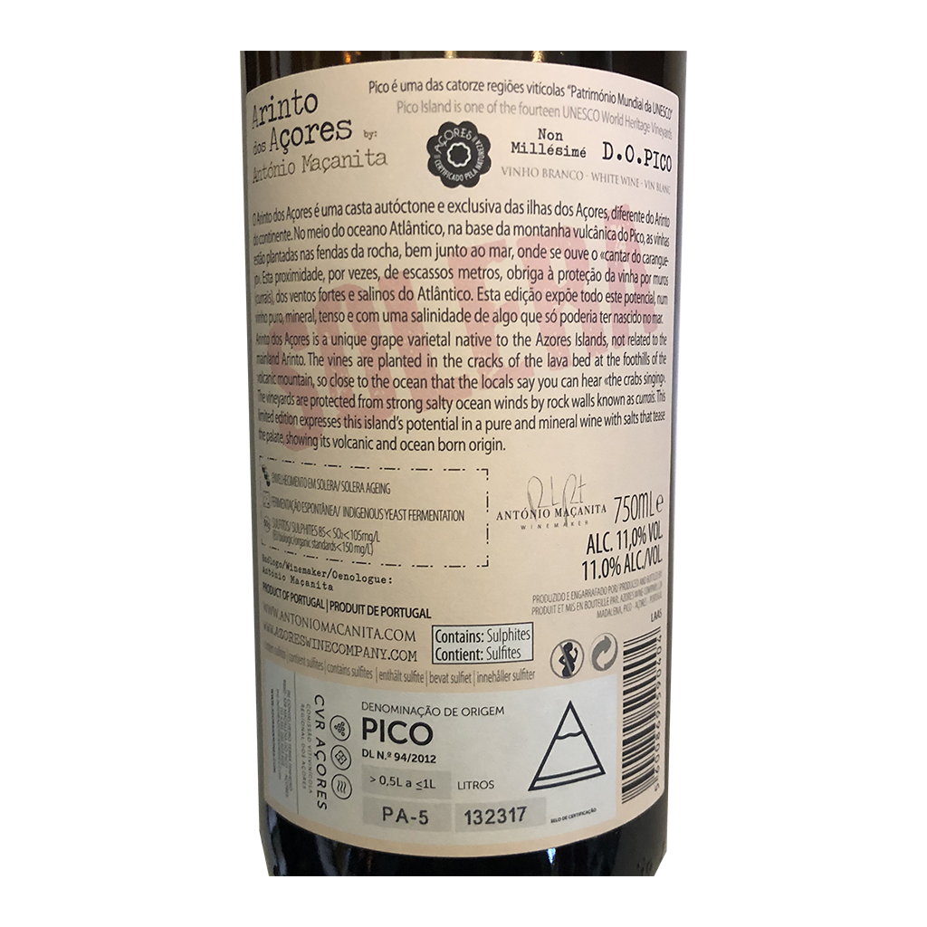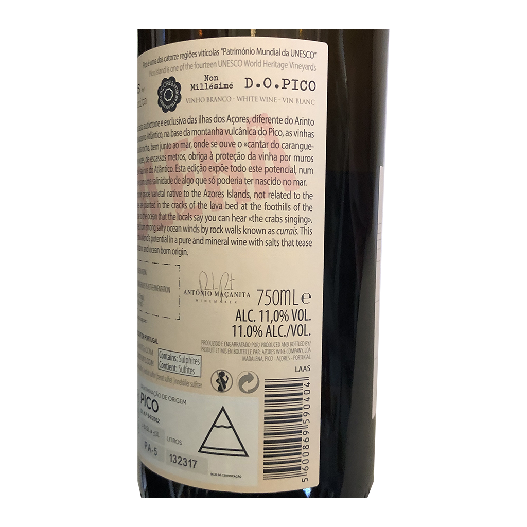 El Arinto dos Açores - Vino Blanco, con 750ml es un Vino Blanco elaborado en Portugal - Açores por Azores Wine Company.