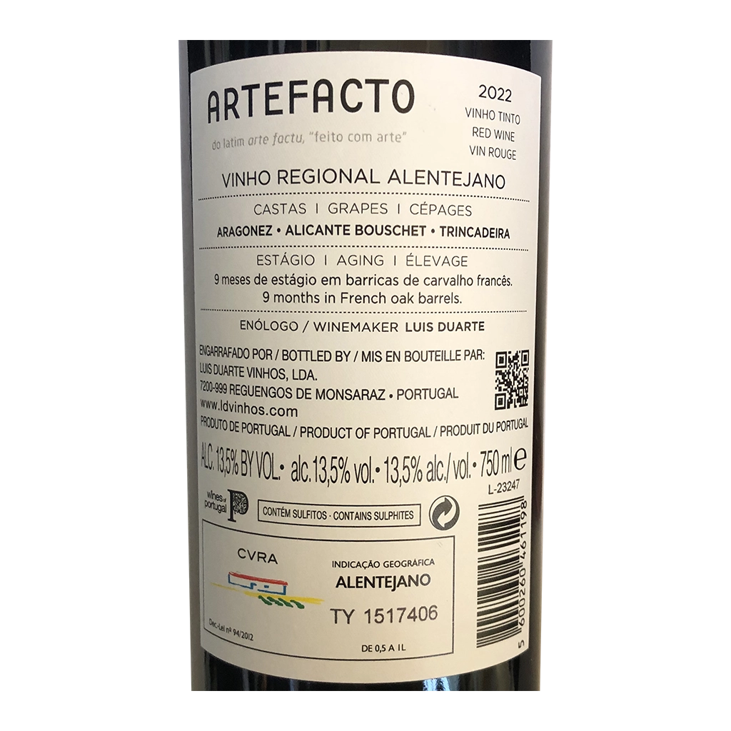 El Artefacto Colheita Selecionada Touriga Nacional - Vino Tinto, con 750ml es un Vino Tinto elaborado en Portugal - Alentejo por Luis Duarte.