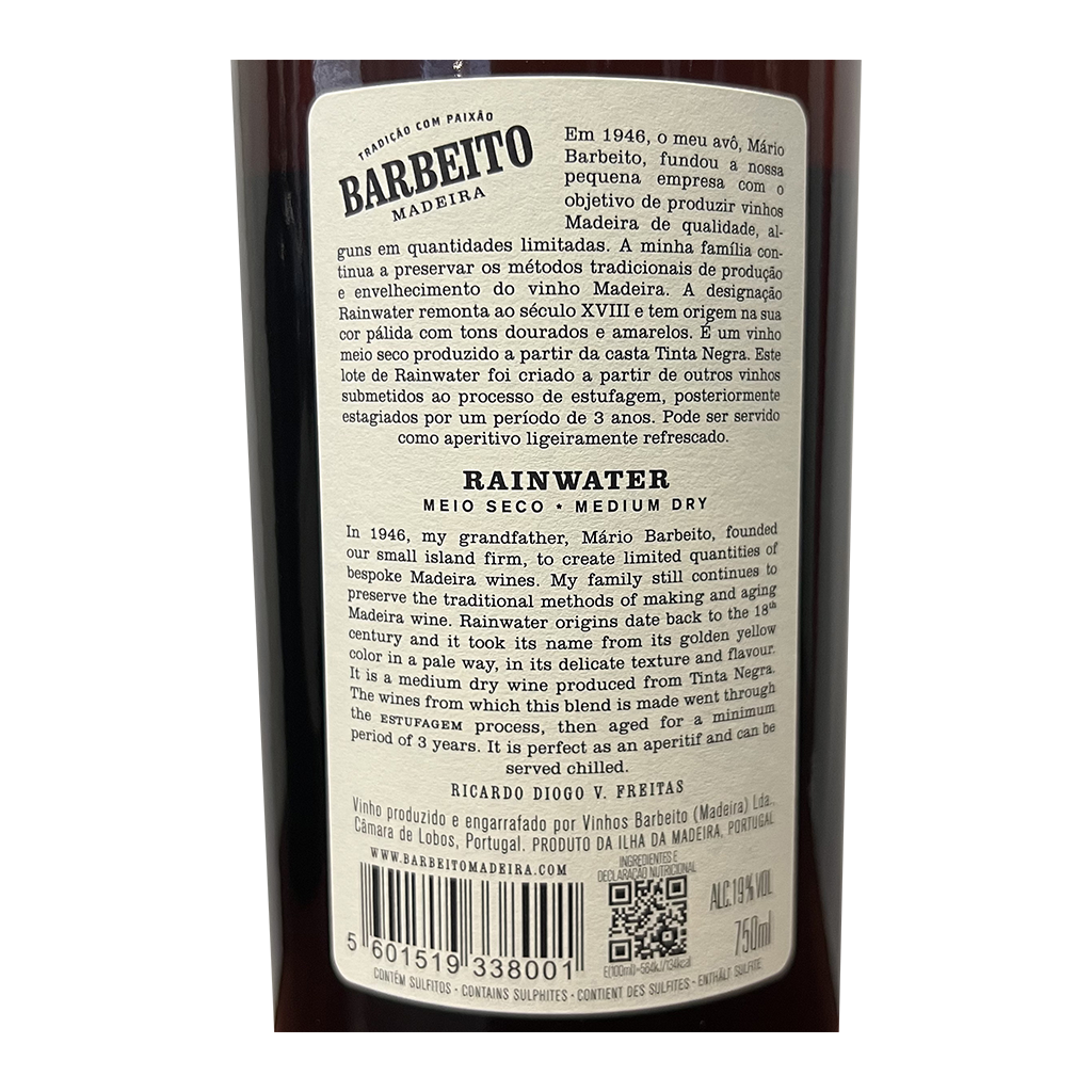 El Barbeito Rainwater Reserva 5 Años - Vino de Madeira, con 750ml es un Vino Fortificado elaborado en Portugal - Madeira por Barbeito.