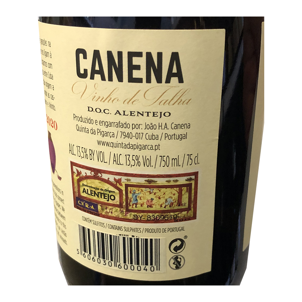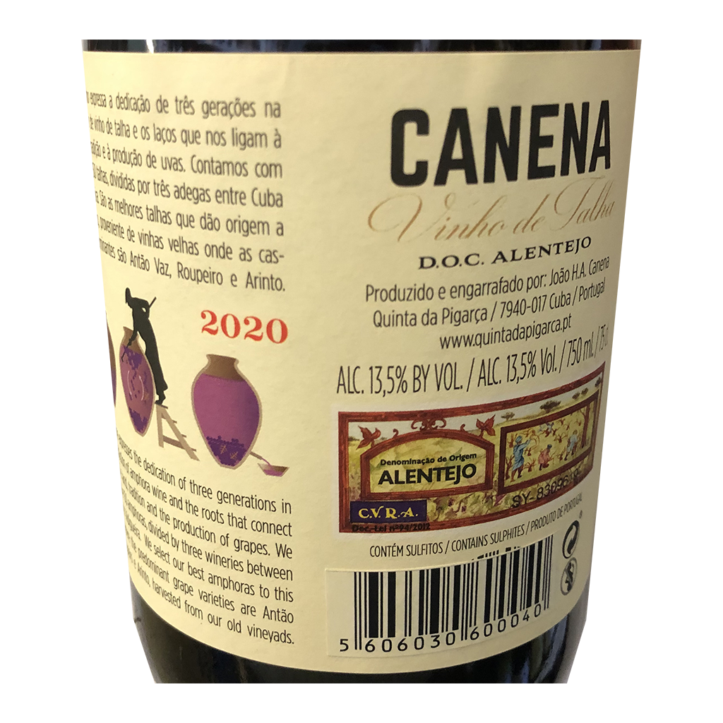 El Canena Talha - Vino Tinto, con 750ml es un Vino Tinto elaborado en Portugal - Alentejo por Quinta da Pigarça.