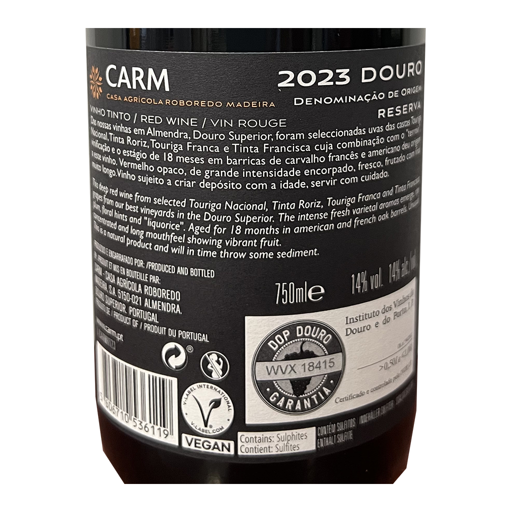El Carm - Vino Tinto, con 750ml es un Vino Tinto elaborado en Portugal - Porto e Douro por CARM.