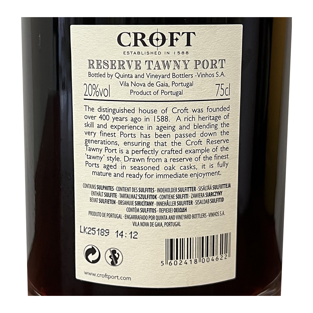 El Croft Tawny - Vino de Oporto, con 750ml es un Vino Fortificado elaborado en Portugal - Porto e Douro por Croft.