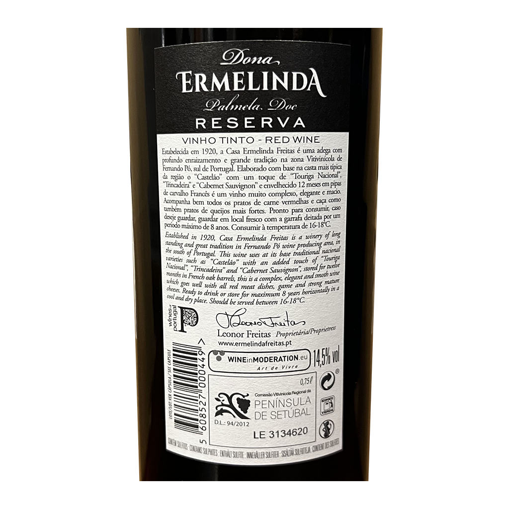 El Dona Ermelinda Gran Reserva - Vino Tinto, con 750ml es un Vino Tinto elaborado en Portugal - Península de Setúbal por Casa Ermelinda Freitas.