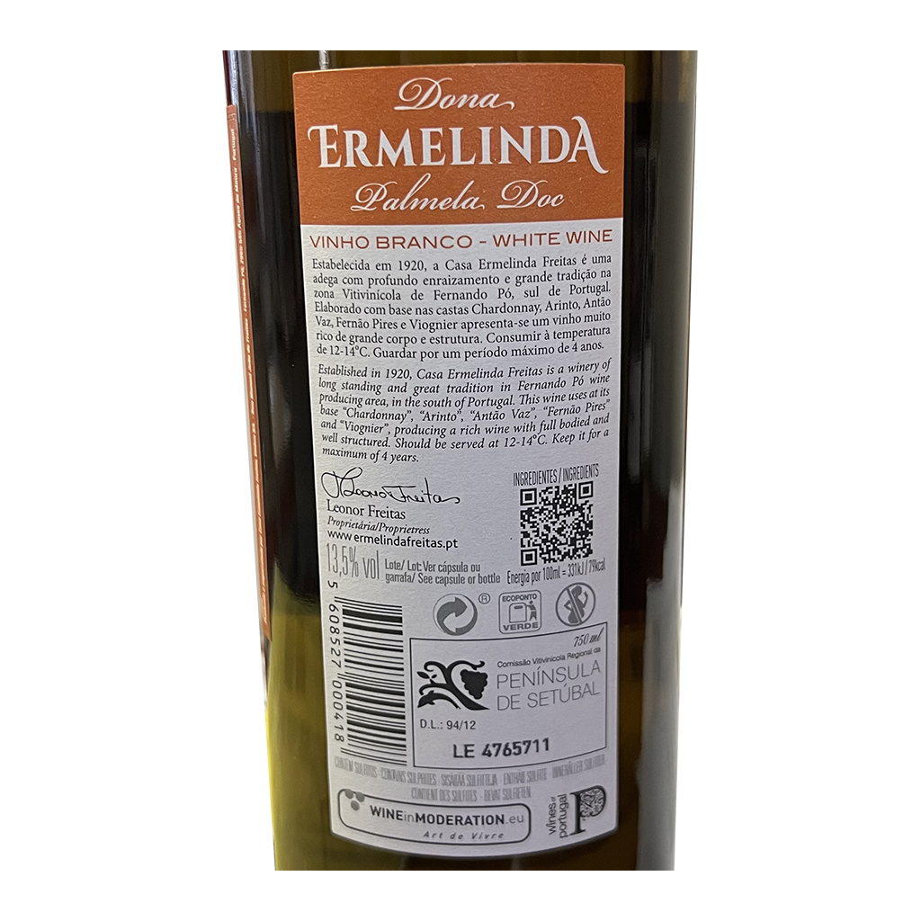 El Dona Ermelinda Reserva - Vino Blanco, con 750ml es un Vino Blanco elaborado en Portugal - Península de Setúbal por Casa Ermelinda Freitas.