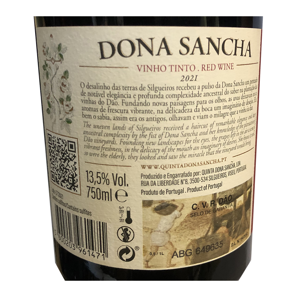 El Dona Sancha - Vino Blanco, con 750ml es un Vino Blanco elaborado en Portugal - Dão e Lafões por Quinta Dona Sancha.