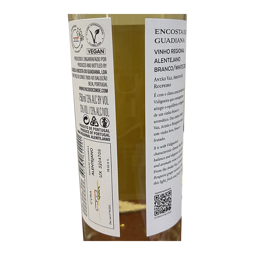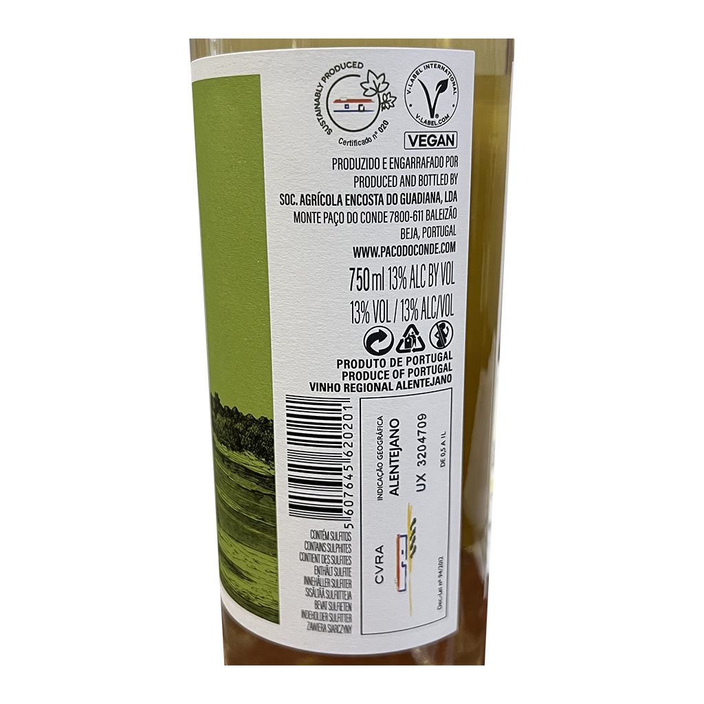 El Encosta do Guadiana Reserva - Vino Blanco, con 750ml es un Vino Blanco elaborado en Portugal - Alentejo por Herdade Paço do Conde.