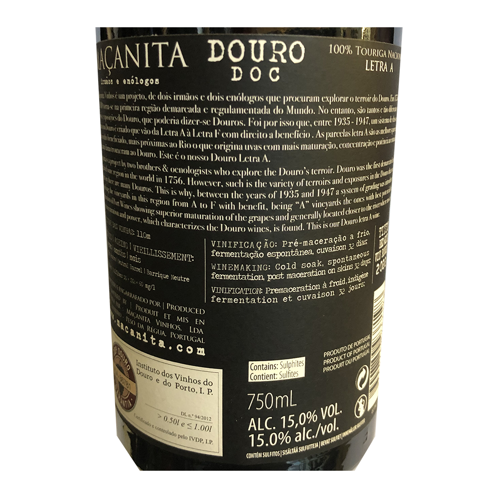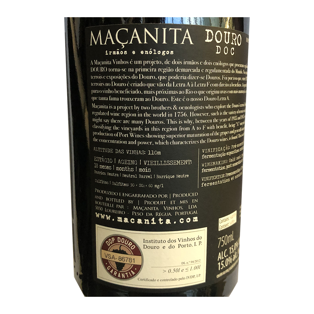 El Maçanita Letra F - Vino Tinto, con 750ml es un Vino Tinto elaborado en Portugal - Porto e Douro por Maçanita.
