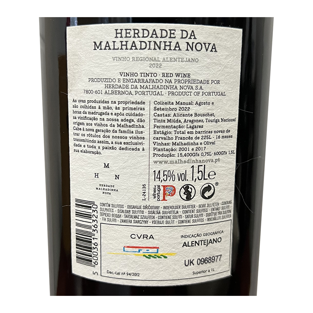 El Marias Da Malhadinha Magnum - Vino Tinto, con 1500ml es un Vino Tinto elaborado en Portugal - Alentejo por Herdade da Malhadinha Nova.