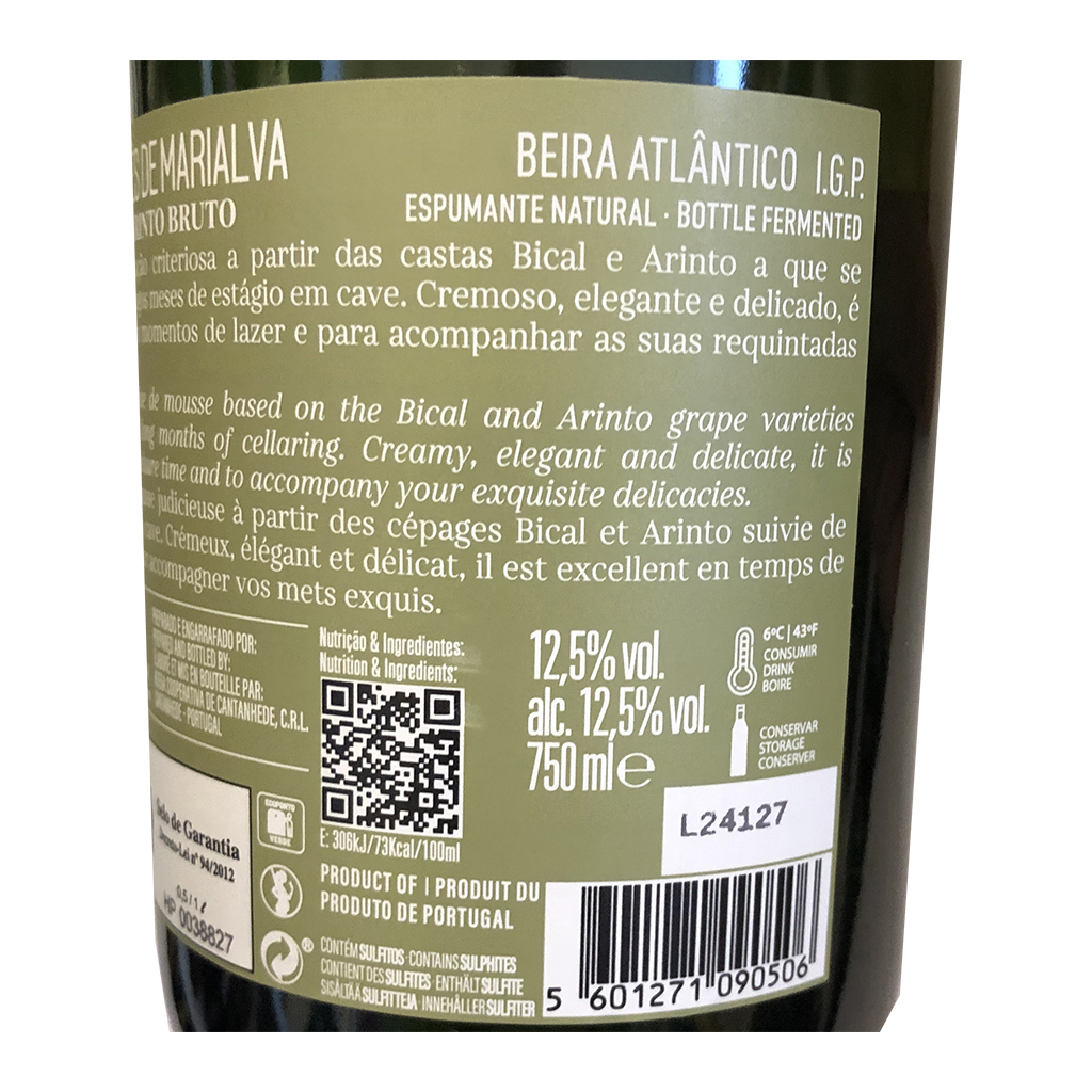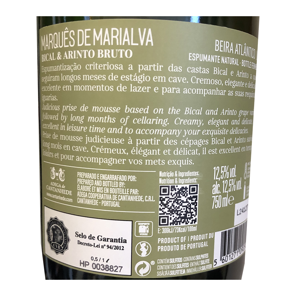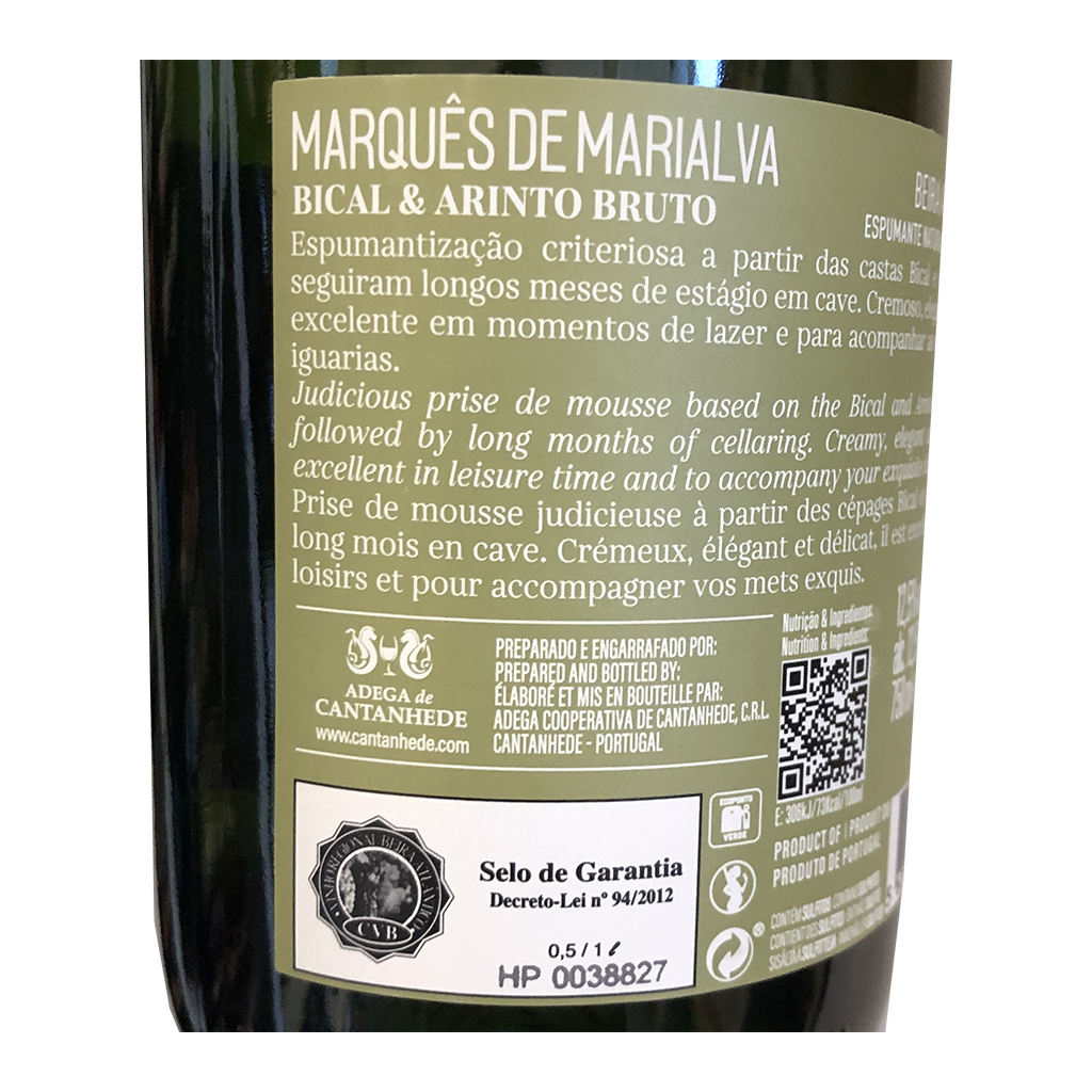 El Marquês de Marialva Bical Arinto Reserva - Vino Espumoso, con 750ml es un Vino Espumoso elaborado en Portugal - Bairrada por Marquês de Marialva.