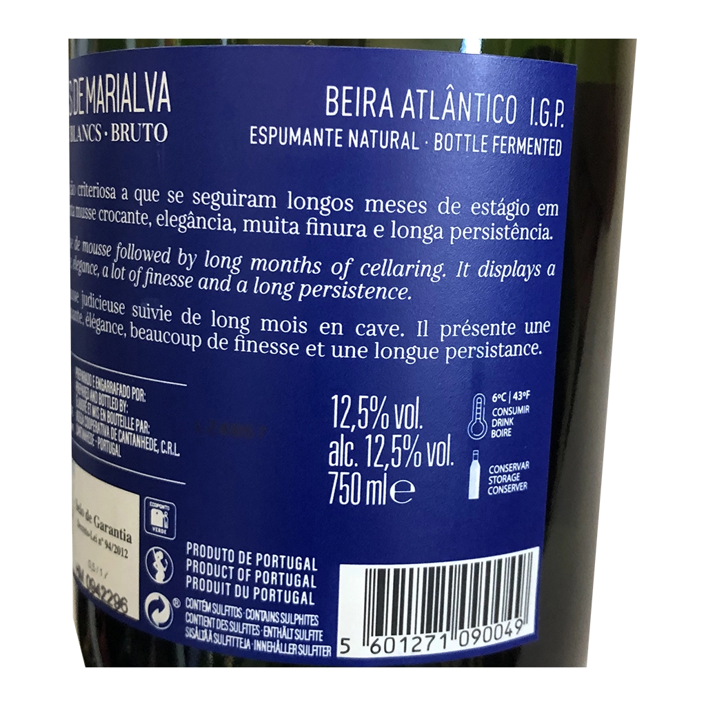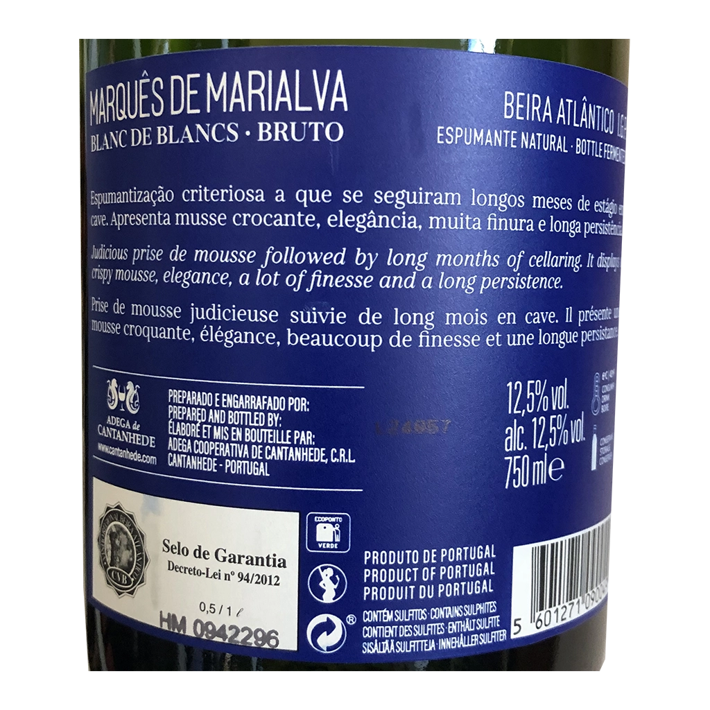 El Marquês de Marialva Bical Arinto Bruto - Vino Espumoso, con 750ml es un Vino Espumoso elaborado en Portugal - Bairrada por Marquês de Marialva.