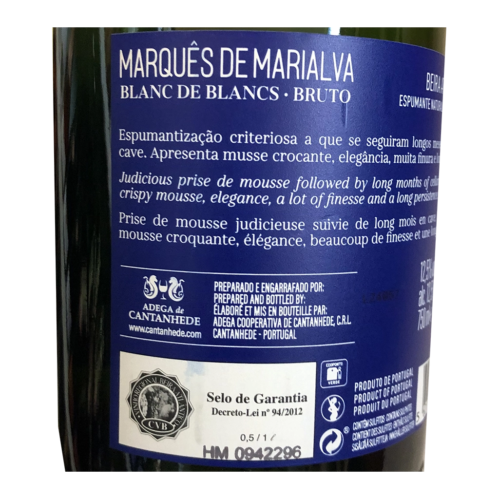 El Marquês de Marialva Bical Arinto Reserva - Vino Espumoso, con 750ml es un Vino Espumoso elaborado en Portugal - Bairrada por Marquês de Marialva.