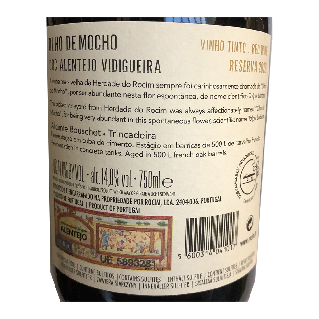 El Herdade do Rocim Alicante Bouschet - Vino Tinto, con 750ml es un Vino Tinto elaborado en Portugal - Alentejo por Herdade do Rocim.