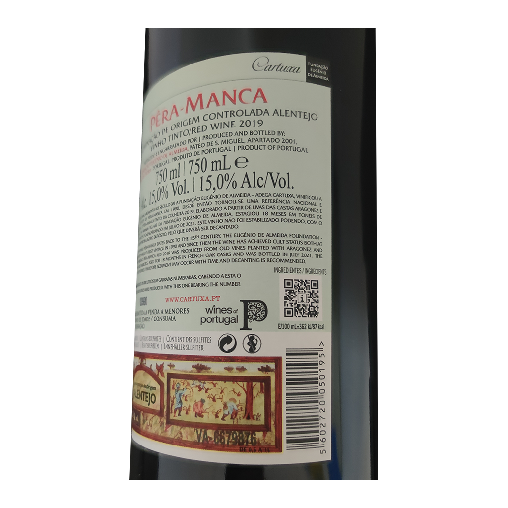 El EA - Vino Tinto, con 750ml es un Vino Tinto elaborado en Portugal - Alentejo por Cartuxa.