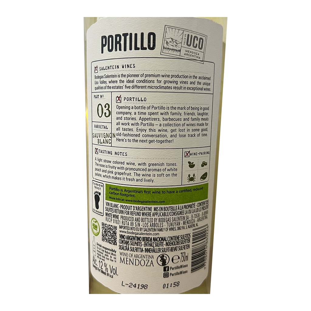 El Portillo Malbec - Vino Tinto, con 750ml es un Vino Tinto elaborado en Argentina - Mendoza por Bodega Salentein.