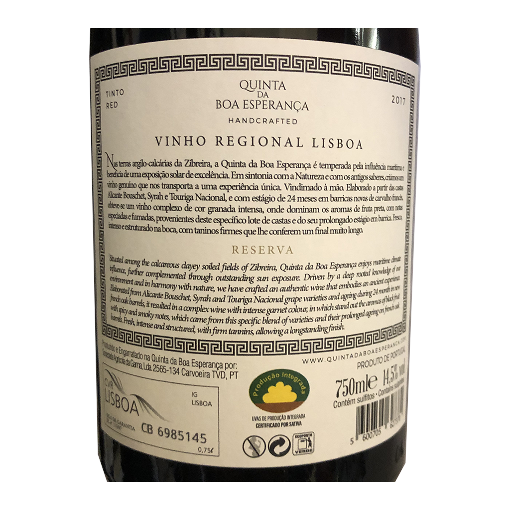 El Quinta da Boa Esperança Alicante Bouschet - Vino Tinto, con 750ml es un Vino Tinto elaborado en Portugal - Lisboa por Quinta da Boa Esperança.