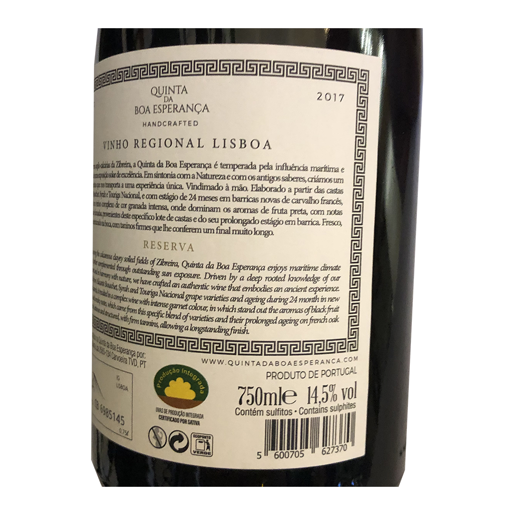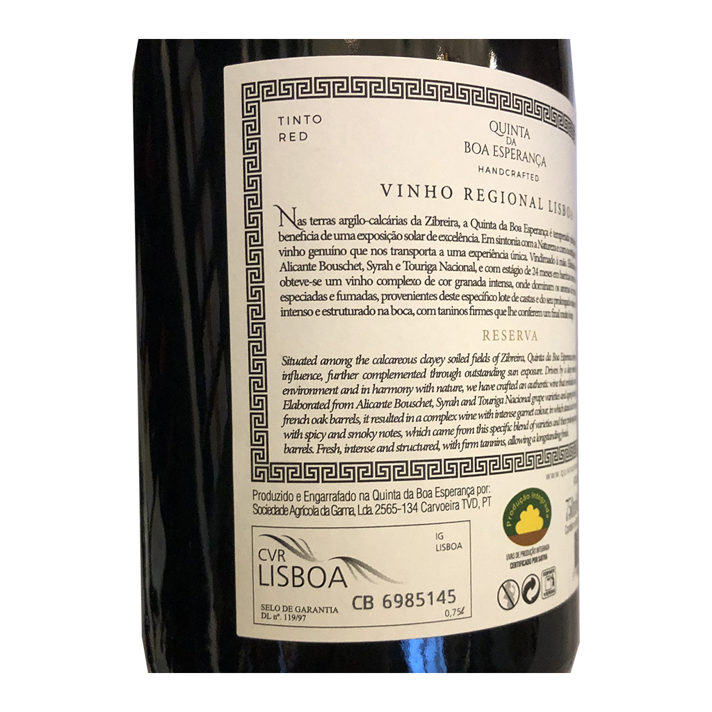 El Quinta da Boa Esperança - Vino Tinto, con 750ml es un Vino Tinto elaborado en Portugal - Lisboa por Quinta da Boa Esperança.
