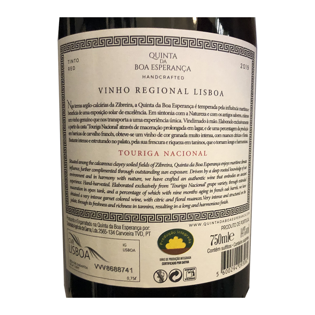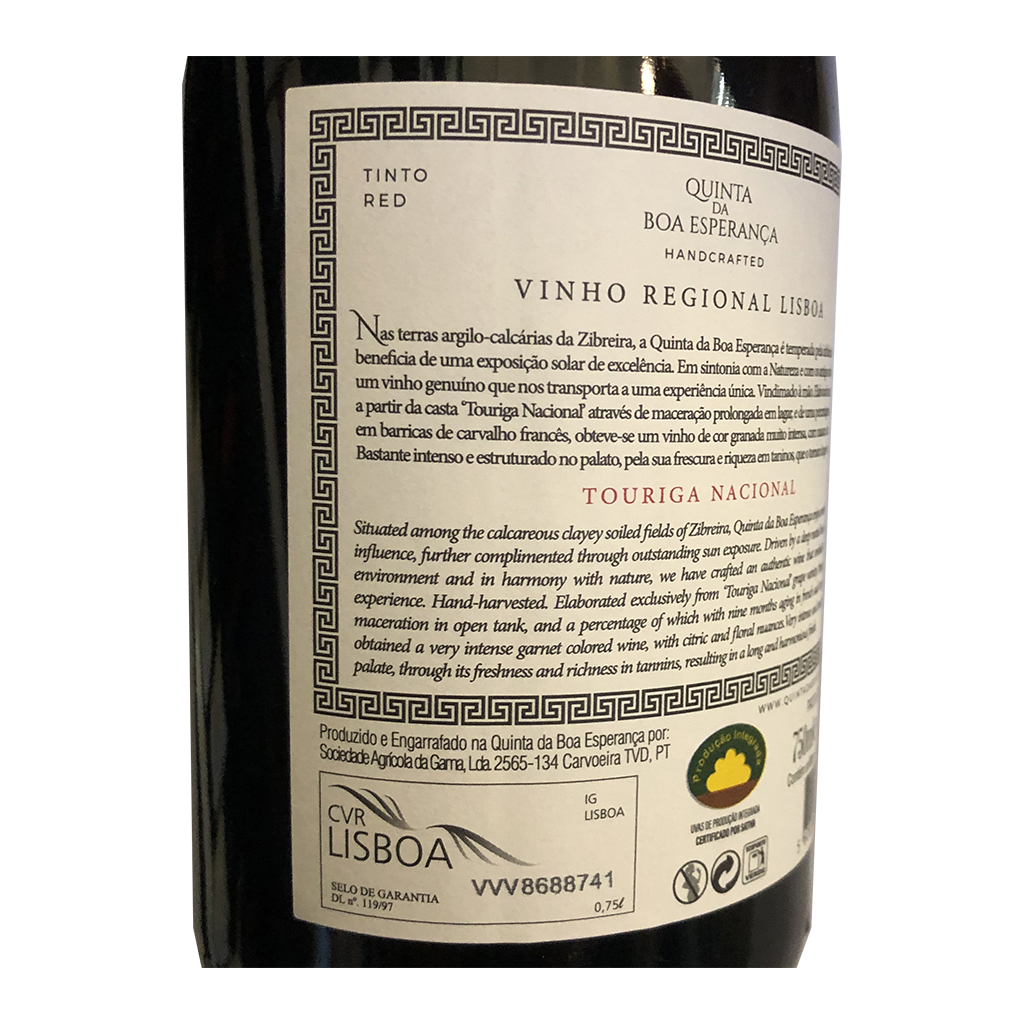 El Quinta da Boa Esperança - Vino Tinto, con 750ml es un Vino Tinto elaborado en Portugal - Lisboa por Quinta da Boa Esperança.
