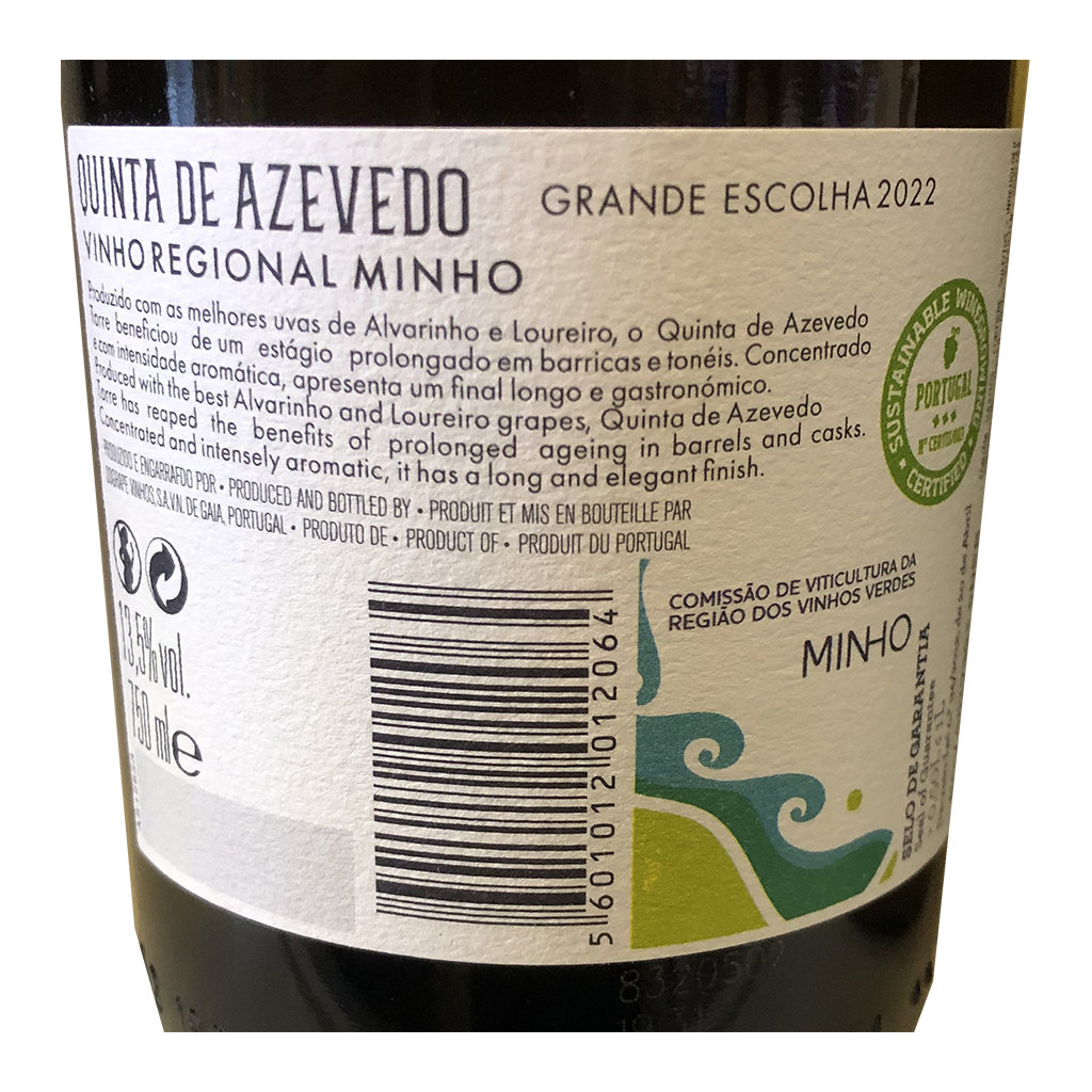 El Quinta de Azevedo Alvarinho Escolha - Vino Blanco, con 750ml es un Vino Blanco elaborado en Portugal - Vinho Verde por Quinta de Azevedo.