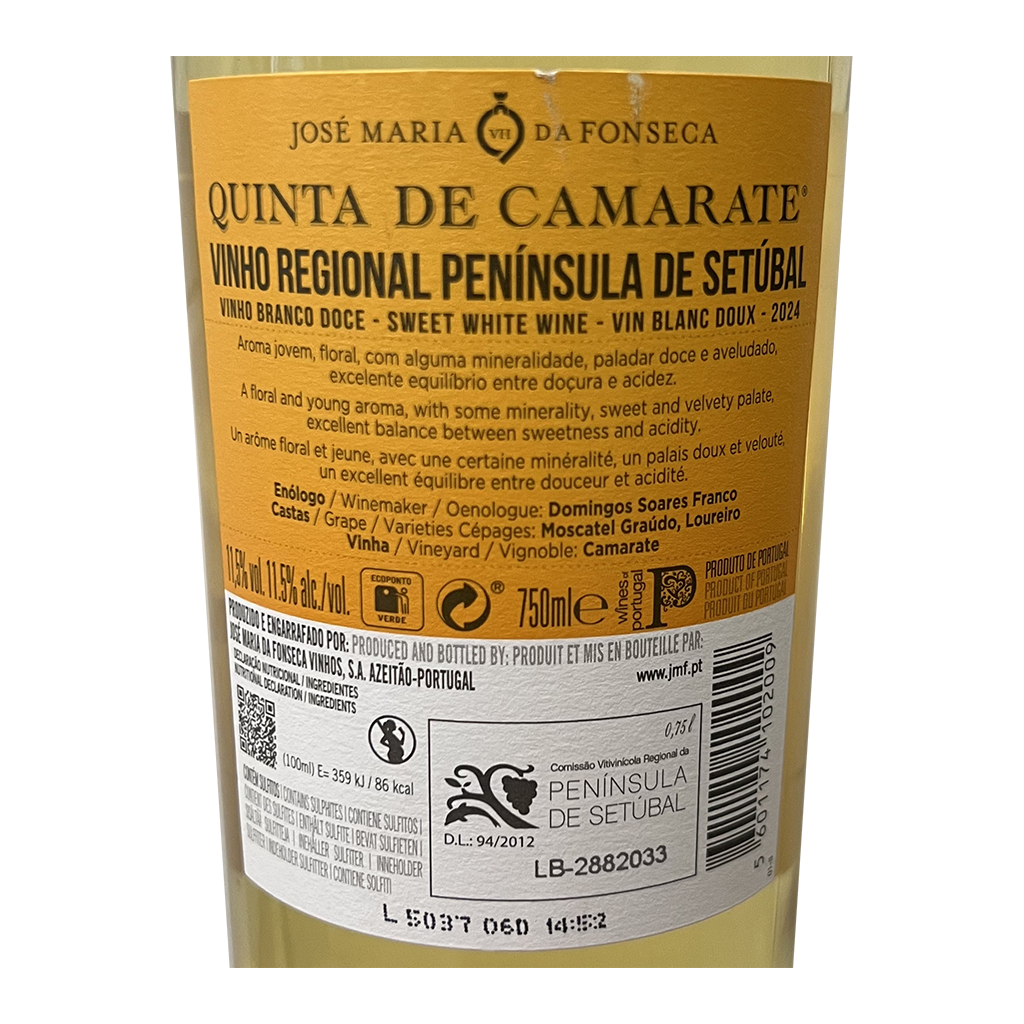 El Quinta de Camarate Seco - Vino Blanco, con 750ml es un Vino Blanco elaborado en Portugal - Península de Setúbal por José Maria da Fonseca.