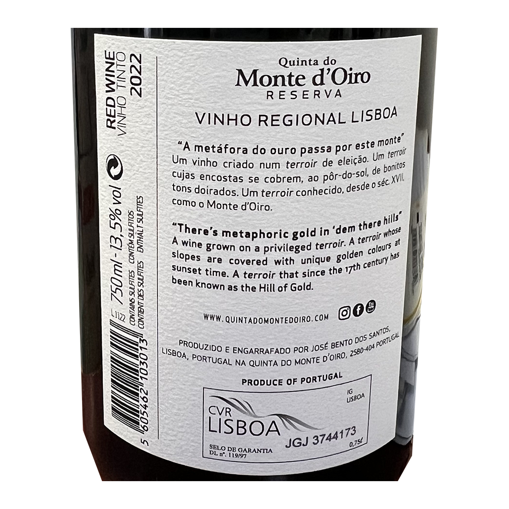 El Quinta do Monte d'Oiro - Vino Tinto, con 750ml es un Vino Tinto elaborado en Portugal - Lisboa por Quinta do Monte d'Oiro.