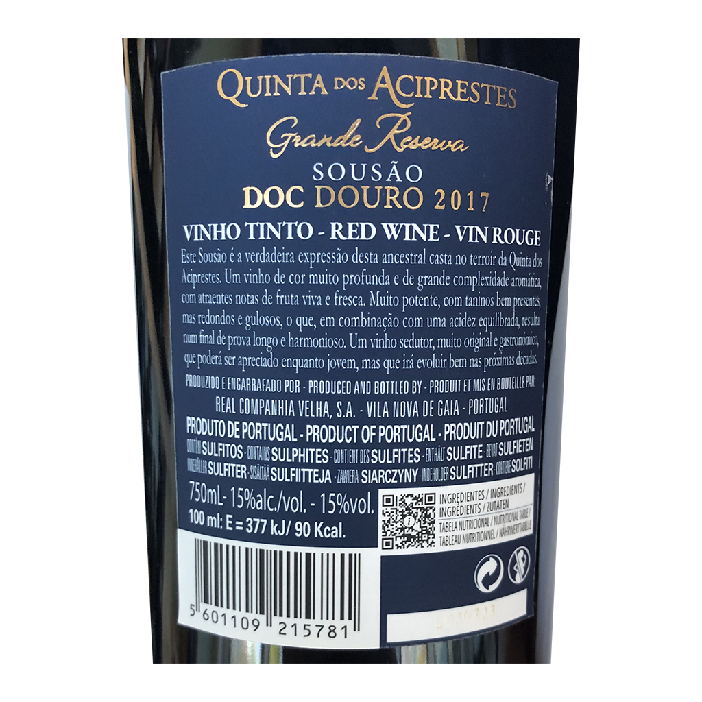 El Quinta dos Aciprestes Grande Reserva - Vino Tinto, con 750ml es un Vino Tinto elaborado en Portugal - Porto e Douro por Quinta dos Aciprestes.